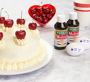 Pastel de vainilla y cerezas