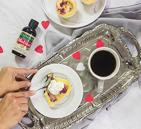 Añade unas gotas en cada cheesecake y con la ayuda de un palillo revuelve un poco para marmolear.