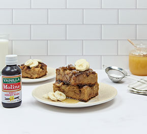 2. A fuego medio-alto, derrite la mantequilla y mezcla el azúcar morena, la canela y un chorrito de Vainilla Molina.