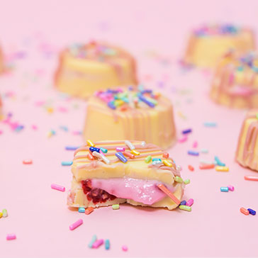 Bites de chocolate blanco y frambuesas